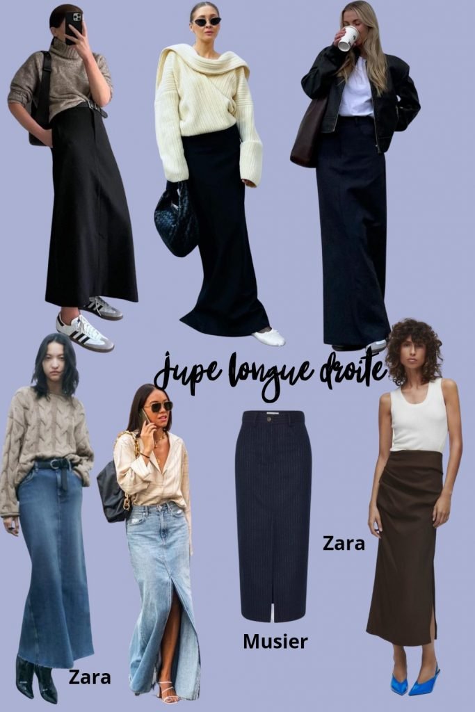 La jupe droite de costard dont je vous ai parlé cet hiver prend de la longueur, c’est la jupe queue de sirène, on va la voir partout, en jean ou drap de laine. Attention néanmoins à ne pas vous retrouver telle une geisha, à devoir avancer par micro pas. Je me souviens avoir eu une jupe comme ça au début des 90’s. Elle s’est craquée jusqu’à la culotte lorsque j’ai monté les marches du métro, je me suis trouvée très conne et ai dû rentrer pour me changer. Arpentez le magasin avant de craquer et pas votre slïïïp.