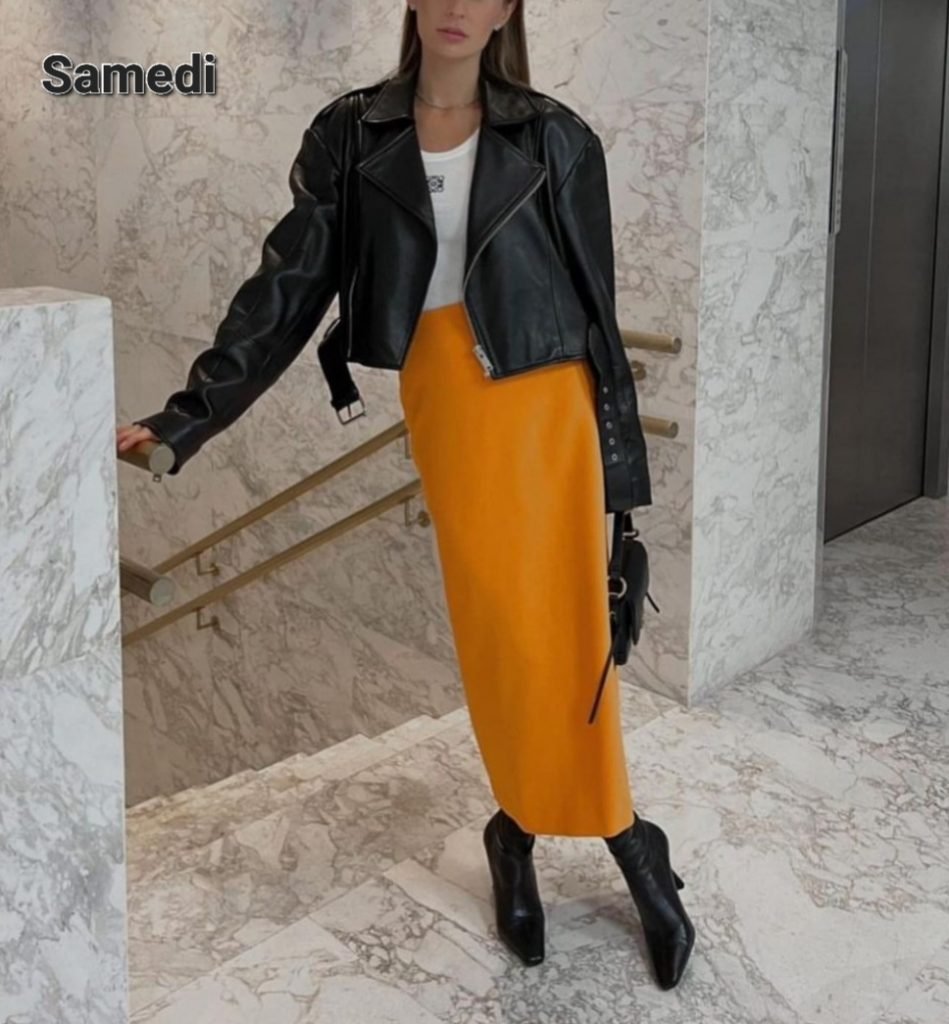 Samedi, une jupe tube, de couleur pour le fun mais si elle est noire, ça va aussi. Petit pull (le tee-shirt attendra encore un peu) et ressortez vos perfs et autres blousons en cuir (type aviateur, à chiner ou à piquer à votre mec), en revanche ils se portent plutôt oversize. Le tout avec des sneakers en journée ou des boots à semelles épaisses et des boots à talons pour le soir.