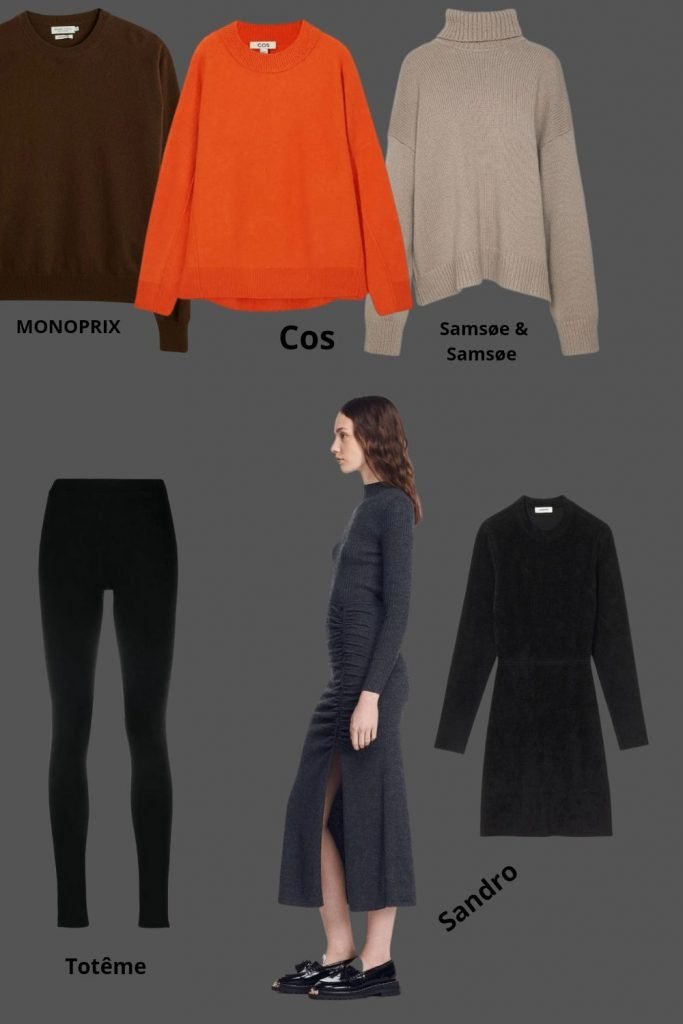 Et de la maille bien sur, indispensable de l’hiver – Les petits pulls col rond sont portés à toutes les sauces, les cols roulés douillets plus longs accompagnent des leggings en maille serré et les robes gainent notre body de folaï ou se font plus loose.