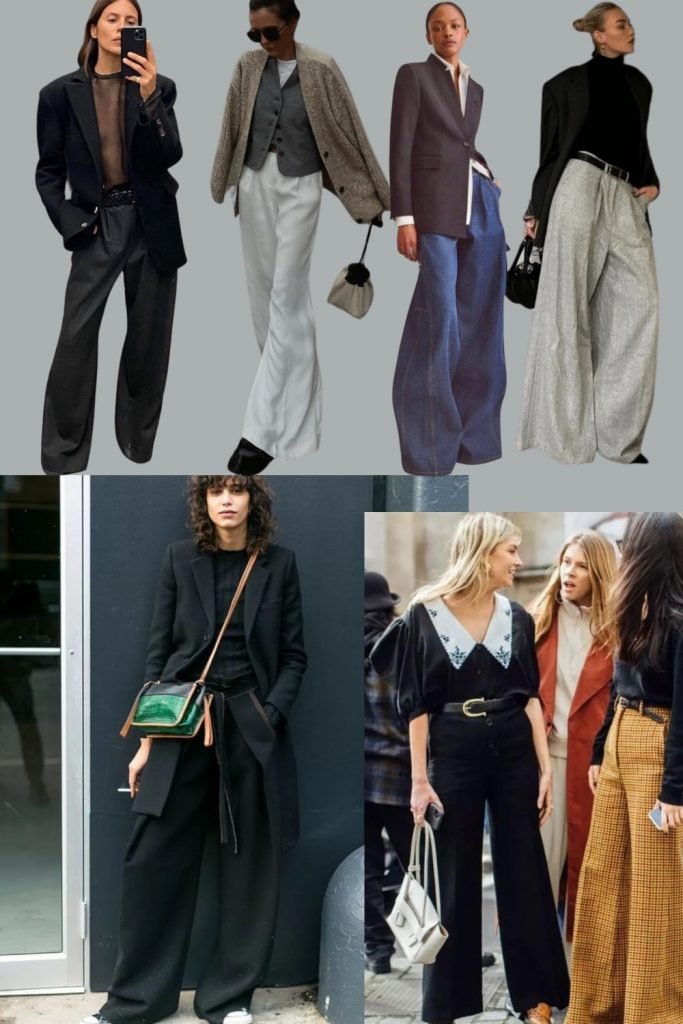 Un pantalon large, à pinces ou non, en gabardine de laine, en velours, en jean, uni ou à carreaux, je dirais que c’est LA pièce à avoir.