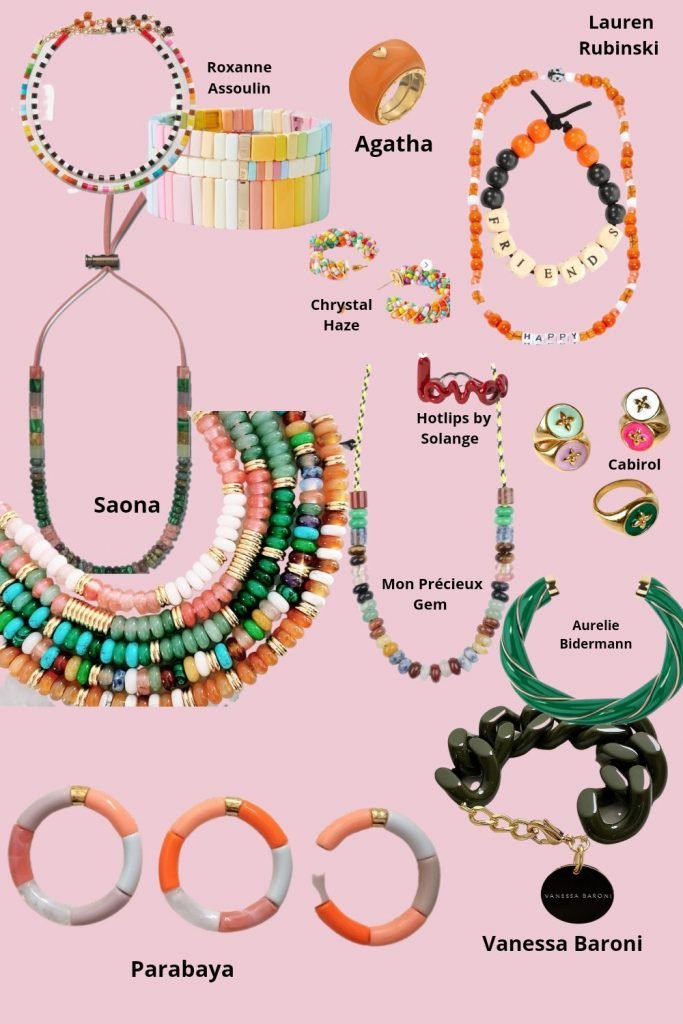 Du FUN : On ne se prend pas au sérieux – surtout lorsque les beaux jours arrivent. On n’hésite pas à mélanger des pièces à la naïveté assumée avec du plus chic. Inutile toutefois de se ruiner pour des bricoles qui ne passeront généralement pas l’été. Et si le cœur vous en dit, faites un tour au rayon droguerie pour vous les confectionner. Perso, je garde quand même tout et chaque été je réassemble différemment avec une ou deux nouveautés.