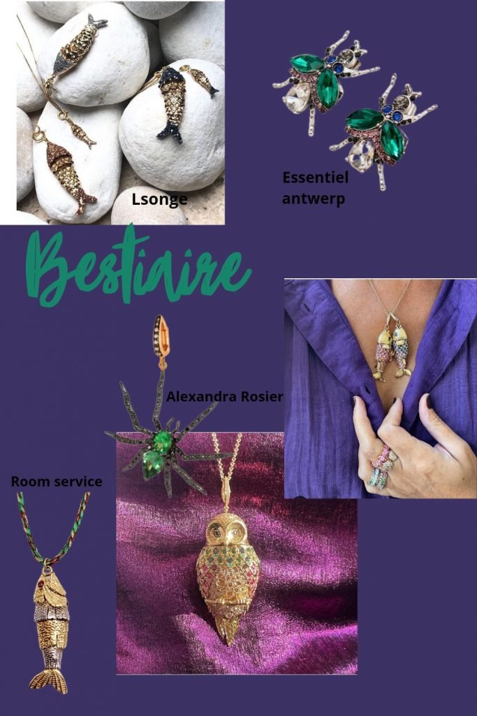 Un petit poisson, un petit oiseau, s’aimaient d’amour tendre, mais comment s’y prendre, quand on est dans l’eau ? Apparemment l’oiseau devra se faire pousser des nageoires puisque c’est le poisson qui sort gagnant de ce grand bestiaire 2023. En effet, en parcourant les sites pour faire ce cahier, je me suis aperçue qu’il y en avait partout. C’est typiquement le genre de bijoux que l’on peut trouver sur les brocantes ou vide grenier. Moi ce que j’aime, ce sont les petites bestioles qui s’accrochent sur des vestes, associées à d’autres broches (par ex 2 bestioles + 1 camée) et plus la veste est roots (type veste militaire) plus le contraste est sympa.