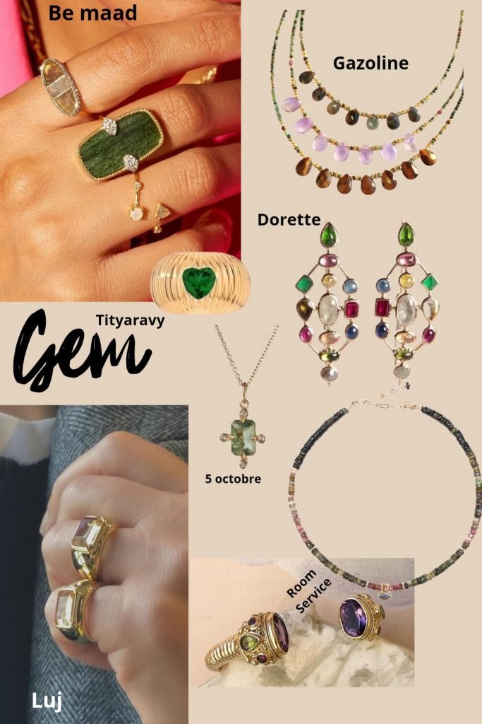 Gem : gem gem tes yeux gem ton odeur, tous tes gestes en douceur, lentement dirigés, sensualité (oui je fais dans le karaoké aussi). Je me souviens qu’il y a une période où les pierres ont été totalement délaissées dans la bijouterie dite de fantaisie même si aujourd’hui la plupart des marques ont un positionnement plus haut de gamme, sûrement pour justifier leur prix ! Quand ce n’est pas de l’or, ce n’est pas de l’or, tu peux enrober ça avec tout le baratin possible que ça ne justifiera rien. Je ne sais pas vous, mais plus jeune j’ai beaucoup acheté chez Agatha, ce n’était pas dispendieux et la qualité était géniale, ma mère a gardé des choses qui n’ont pas bougé. Alors que j’ai des pièces bien merdiques qui viennent de chez ces « nouveaux créateurs » qui sont bien plus onéreuses. Je vous ai raconté ma déconvenue avec Bohemian Rapsodie ? Mon bracelet se casse au bout d’une semaine. Je mets ça en stories. La meuf m’insulte en MP. Une vraie c……….. Toujours est-il que les pierres sont de nouveau en odeur de sainteté. Et c’est peu de le dire puisque toutes les pratiques new âge ne sont plus l’apanage des seuls hippies en plein ego-trip mais elles sont aussi devenues celles des bobos yogistes en mal de spiritualité (ok je fais du yoga mais je ne suis pas dupe) – Du coup quoi de mieux que de s’appuyer sur la pratique très ésotérique de la lithothérapie (le soin par les pierres) pour mieux vendre ses pierres. À défaut d’élever vos vibrations, ces petites pierres serties influenceront votre humeur positivement.