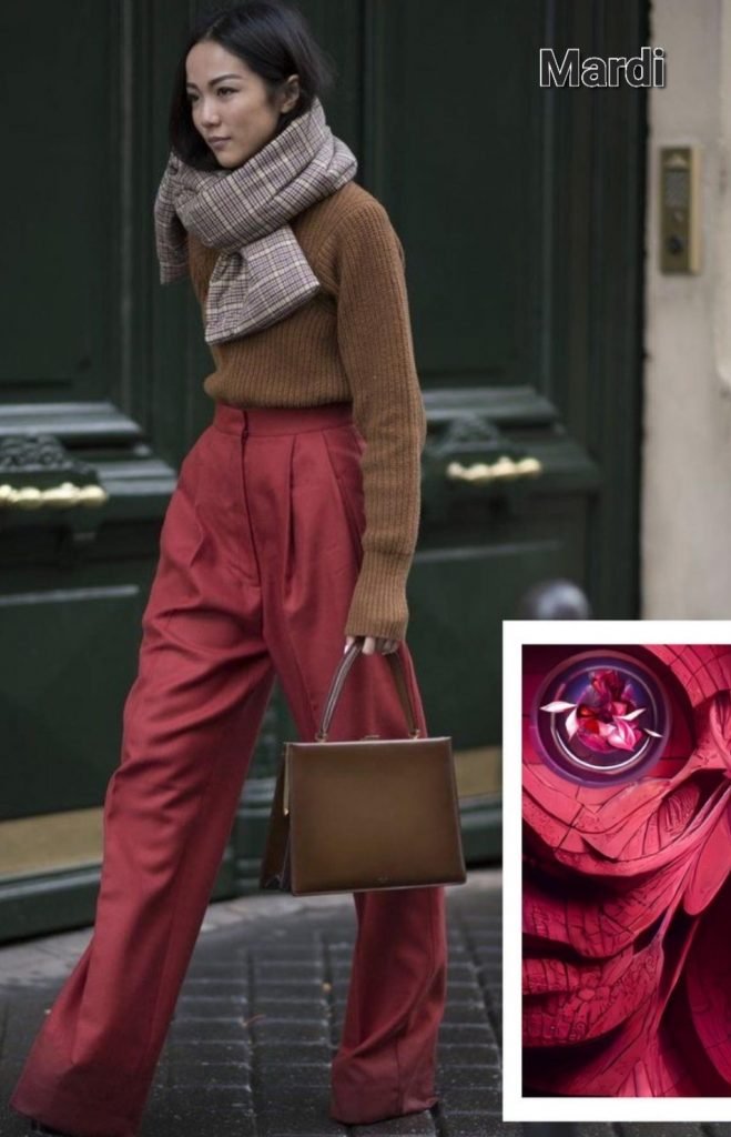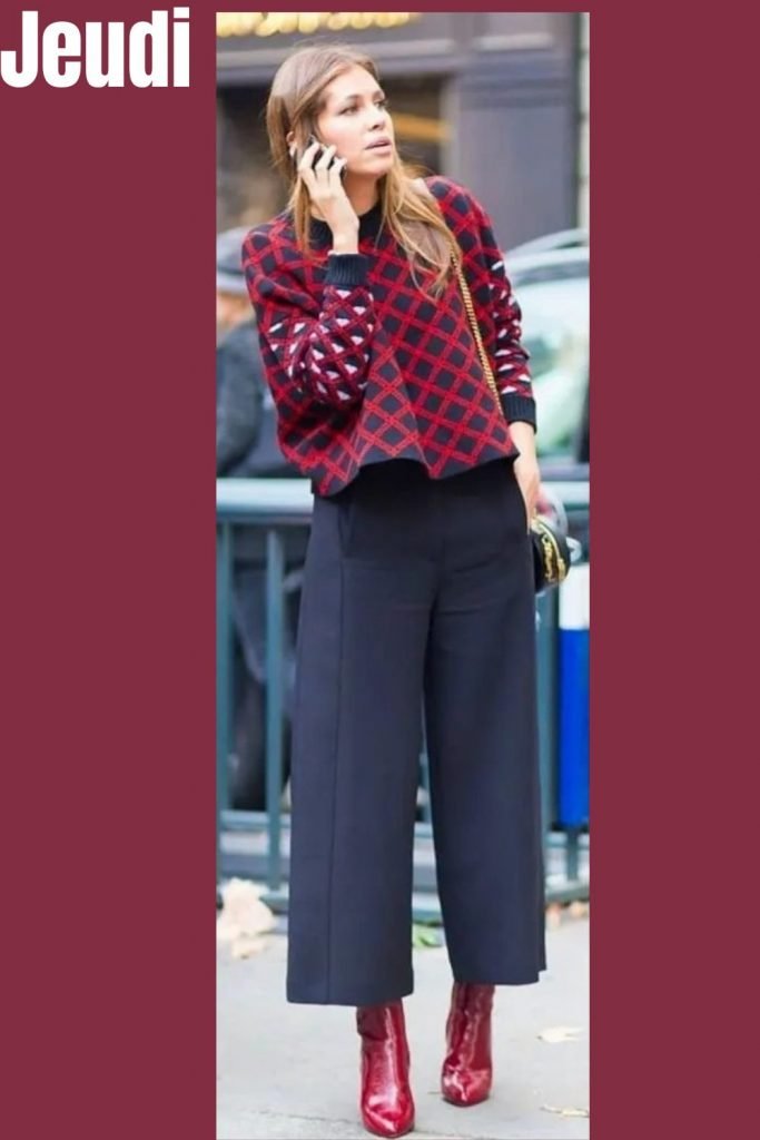 Le mardi, on prend presque les mêmes et on recommence sauf que cette fois, ce qui réveille le look, c’est le pantalon de couleur, il tombe sur les chaussures que l’on préférera à talon. On s’inspire des jolies associations de couleurs pour choisir son pull, selon la teinte dudit futal, on s’enroule dans une grosse écharpe et par dessus on fait ce qu’on veut tant qu’on harmonise avec le reste.