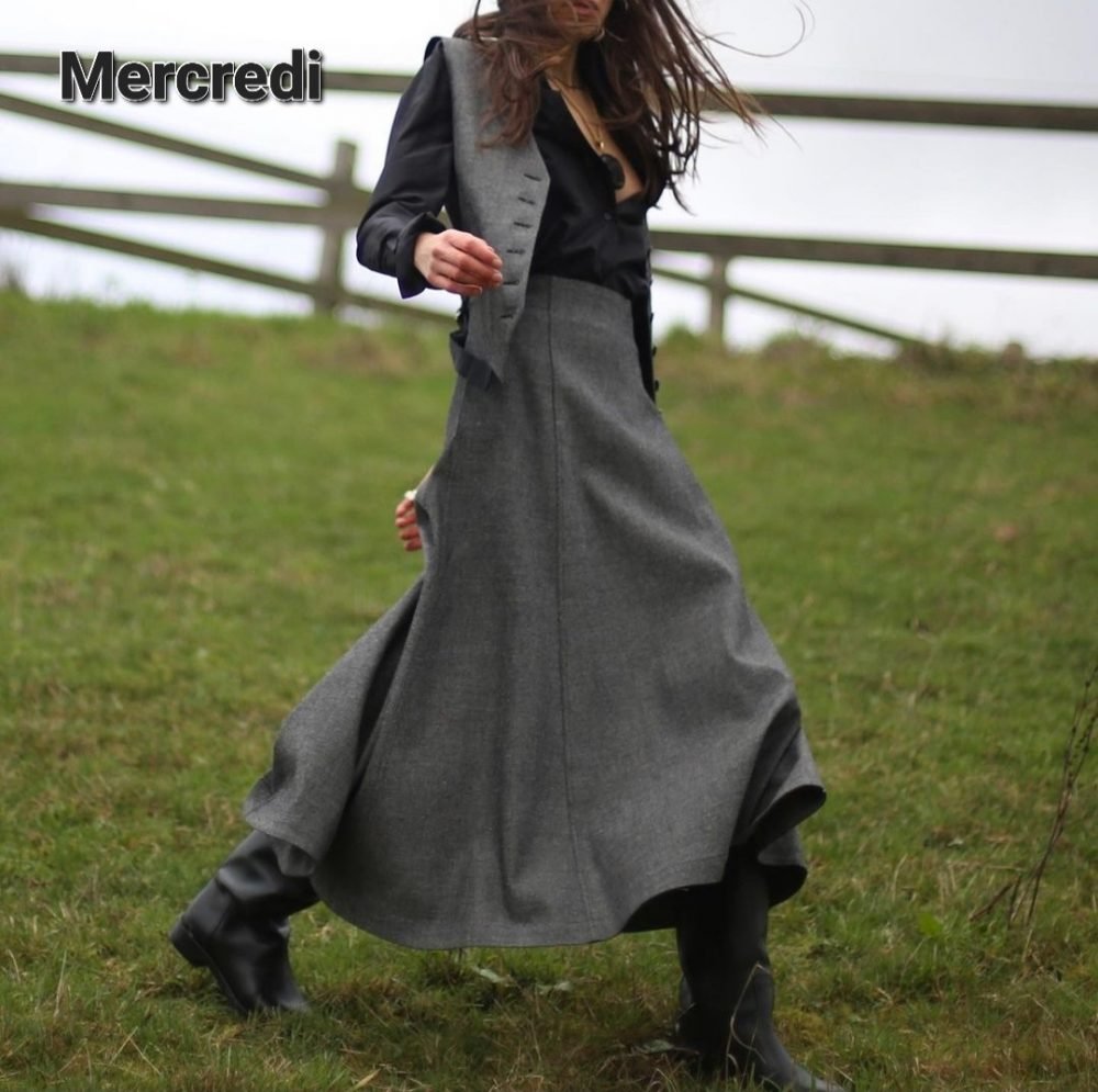 Le mercredi on se la joue slave. Une jupe en forme, longue, avec des bottes cavalières plates, un gilet d’homme porté sur un chemisier (il fait trop froid ? Glissez un fin col roulé dessous), le chemisier peut être imprimé, long manteau redingote pour l’effet Anna Karenine.