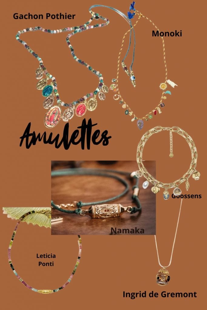 Les Amulettes : Encore un truc de bobo baba que pour ma part j’affectionne. Pour autant je ne leur prête aucune vertu protectrice, qu’elles soient bénies par un chaman ou pas ah ah – Evidemment je n’investirai jamais un rein là dedans mais l’été je ne peux m’en passer. Ayez l’œil pour dénicher leur sosie car une fois mixées au reste elles feront bien la blague et l’été.