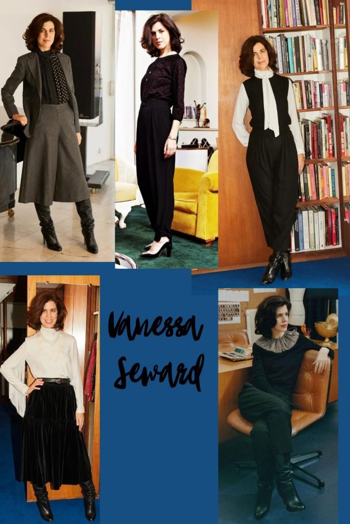 Vanessa Seward le charme discret de la bourgeoisie. Elle parait sortir tout droit d’un film de Chabrol. Ses tenues nous embarquent dans des histoires un peu surannées du milieu des années 70 ou les femmes fument des cigarettes avec des porte-cigarettes, sortent des bouteilles de whisky d’un mini bar à roulette et trompent leur mari avec leur meilleur copain, c’est le look classicul par excellence.