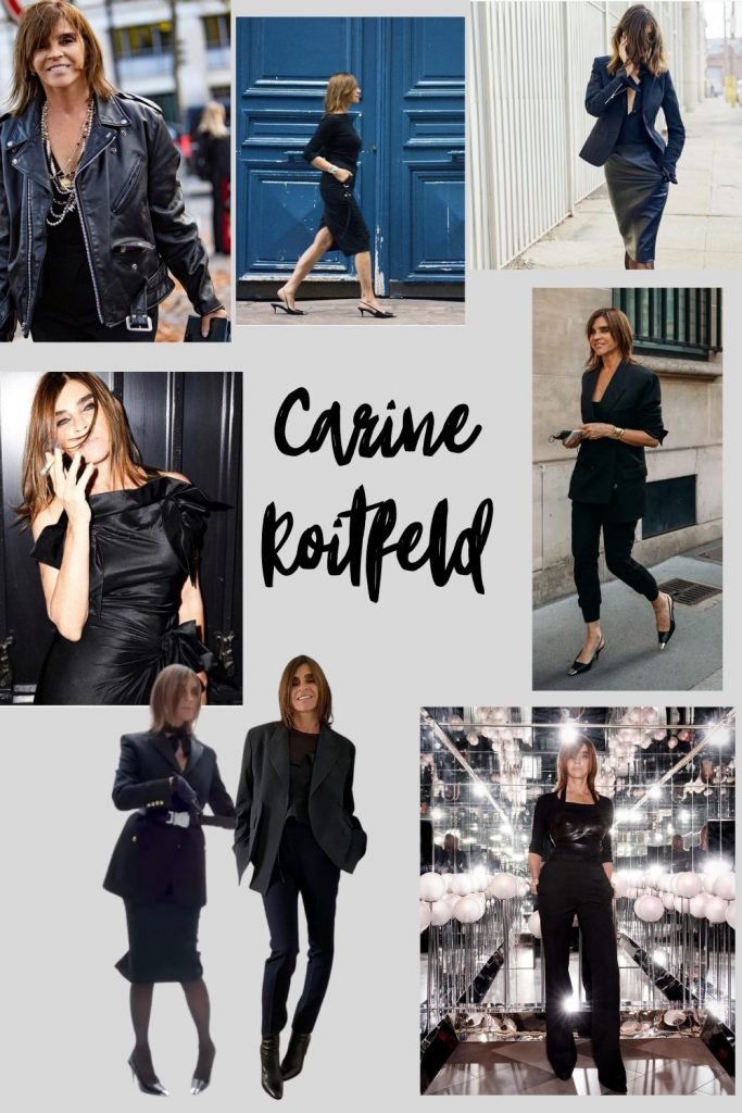 Carine Roitfeld, notre Anna Wintour Hexagonale, c’est elle qui initiera le mouvement Porno chic au début des années 90 avec Mario Testino en créant l’image de la nouvelle femme Gucci alors que Tom Ford accède à sa direction artistique C’est à cette époque aussi que son style se forgera sur ce thème. Une amazone nouvelle génération, conquérante, sexy et un peu venimeuse. Sa marque de fabrique ? Ne jamais porter de sac alors qu’en cette décennie 90 nous sommes en plein règne du it bag. Une façon de se placer au dessus de la mêlée. La plupart du temps en all black, un soupçon de SM, smocky-eyes et cheveux dans les yeux, solaires futuristes, son look n’a pas changé depuis 30 ans.