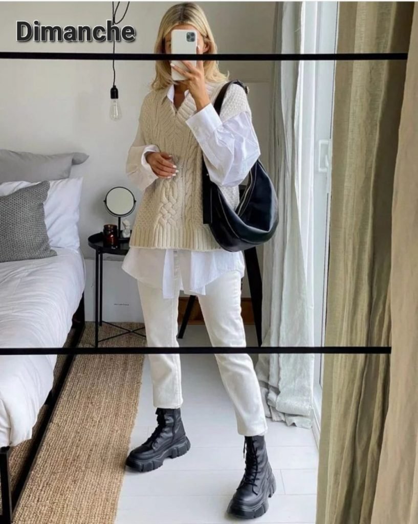 On termine la semaine par ce petit camaïeu de blanc d’hiver et c’est en cela qu’il est intéressant, très comfy tout à fait adapté à la ballade dominicale quelle qu’elle soit.