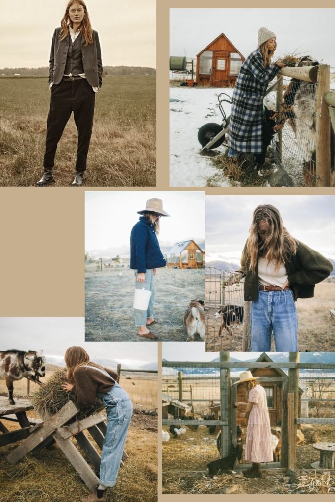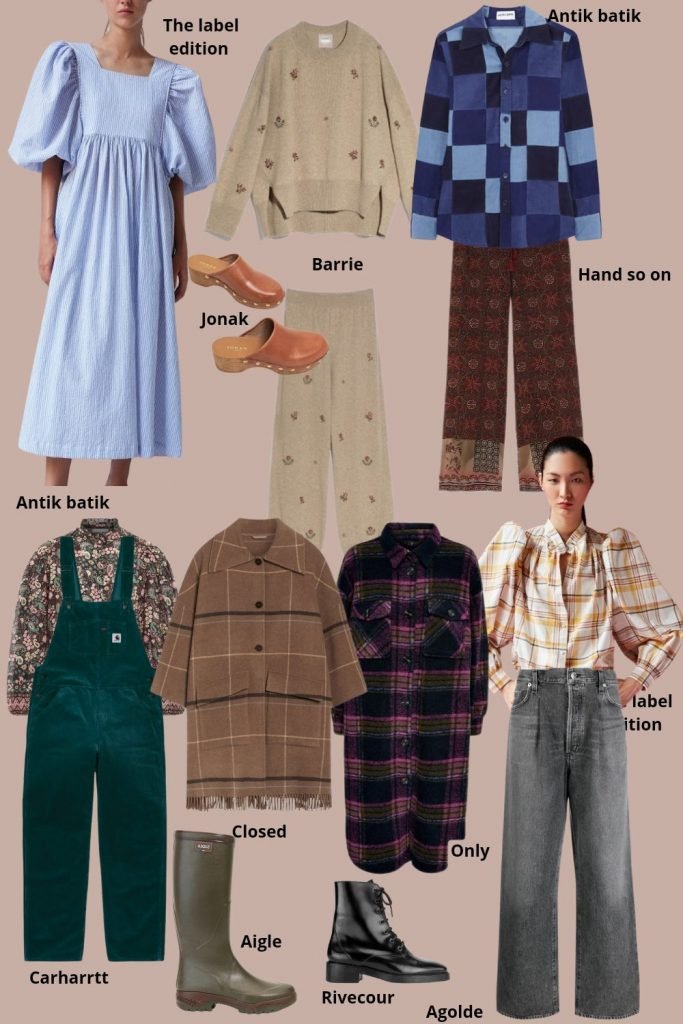 Pour un week-end à la campagne, on ne pense pas fashion, on pense ambiance. On oublie le jean wide leg qui va traîner dans la boue, on embarque nos jeans boyfriend et autres salopettes, une paire de chaussures costaudes, des bottes de pluie, des matières brutes, de la maille et on féminise le tout avec des petites blouses liberty ou en madras, des robes petites maisons dans la prairie, réchauffées par des grosses mailles et des collants en laine, des vestes en boutis. Le contraste masculin / féminin presque enfantin fonctionne bien dans ce contexte. Du coup pensez à aller traîner du côté de vos fringues d’été et mixez tout ça.