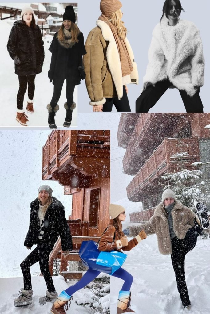 Peut être allez vous partir au ski. Je n’y suis plus allée depuis des années, mon fils ayant décrété qu’il n’aimait pas ça. Je ne sais même plus si ça me manque ou pas… À choisir, je préfère la chaleur mais j’aimais le lâché prise de ces semaines hors du temps au planning ritualisé – Ski, station, apéro, raclette – J’aimais bien les looks après-ski, attention hein, pas ceux des stations huppées, tout en logos et manteaux de fourrure bling bling, beurk, non mais un bon fuseau noir, des grosses patounes aux pieds, des beaux pulls et selon les années, une belle parka, une doudoune au volume imposant, un sherling ou une grosse veste en fausse fourrure et ça suffisait pour me faire la semaine. Ma besace Prada en nylon était de tous ces séjours et elle est toujours vivante. Pourquoi faire compliqué lorsqu’on peut faire simple ?