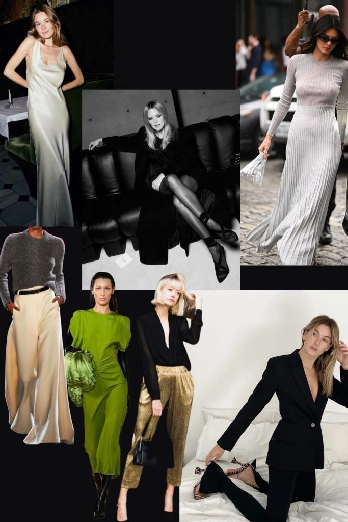 Soirée en amoureux en mode je sors le grand jeu. Les mecs sont peu friands de trucs hyper fashion. Ils ne disent rien mais n’en pensent pas moins, au mieux ils diront « j’y comprends rien » ce qui revient à dire « je déteste » ah ah, la plupart du temps on s’en fout de ce qu’ils pensent (enfin moi je m’en fous) sauf que dans le contexte, on a envie de leur plaire. Les mecs aiment les choses classiques et chics, un peu sexy mais pas trop. Le corps doit être légèrement moulé quelque part, selon vos atouts (seins, taille ou cul). Je caricature ? À peine ! Si le votre n’aime rien de tout ça, c’est soit qu’il est hyper jaloux (ce qui n’est pas très bon signe) soit qu’il est hyper faux cul (pas bon signe non plus) je suis pour la paix des ménages ah ah – Alors optez pour une jolie robe effleurant délicatement vos courbes comme la verte ci-dessus, que je trouve être la plus jolie de la saison – une Victoria Beckham, une slip dress recouverte par une petite veste, un costume fitté ou un smoking porté sur la peau, une robe en maille affolante, un haut « regarde moi dans les yeux » mais avec un bas classique, une jupe très longue de sirène ou pantalon très très large du même effet avec un haut simple type tee-shirt manches courtes roulottés ou encore une mini robe mais avec un long manteau ou une grande veste oversize et toujours toujours des chaussures à talons.