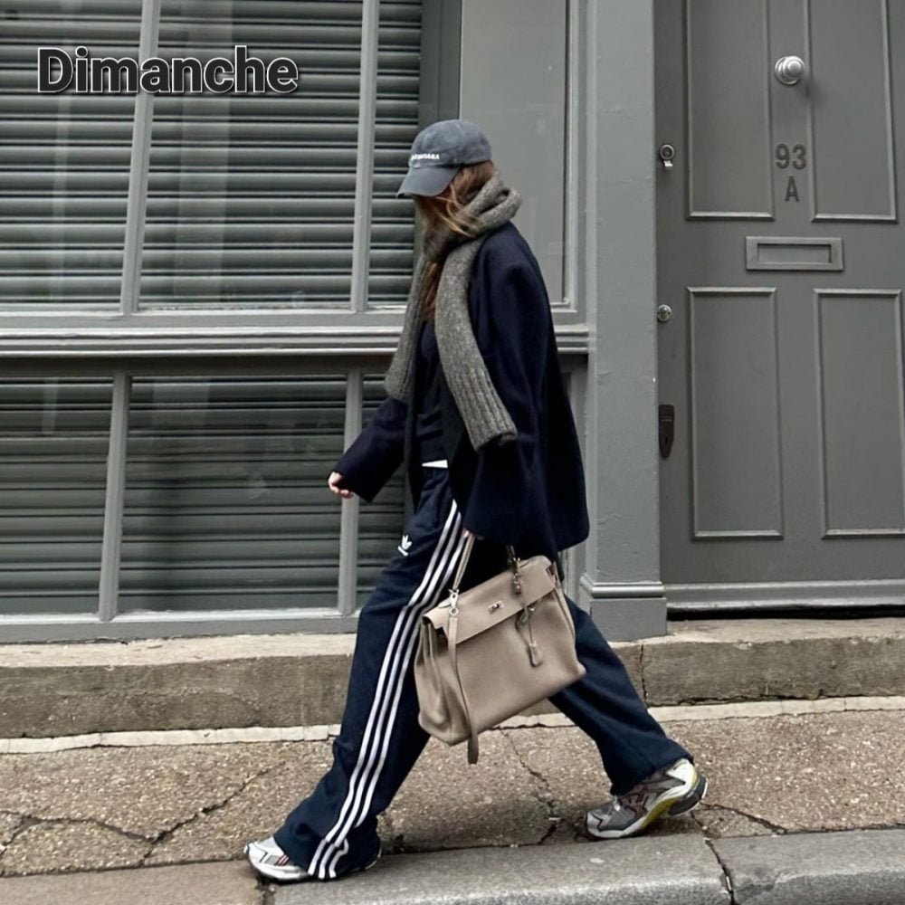 Dimanche on sort le jogging mais sûrement pas pour aller en faire un ah ah. Exit le sweat, on porte ça avec un tee-shirt dépassant du cashmere (ou de la laine, ne chipotons pas), un beau veston, une belle écharpe, que des trucs qui viennent upgrader le jog de schlag. Une casquette si vous avez une tête à ça (ce qui n’est pas mon cas) ou des solaires de star. En revanche on remplace la valise par un beau cabas. Et oui forcément des runnings aux ieps.
