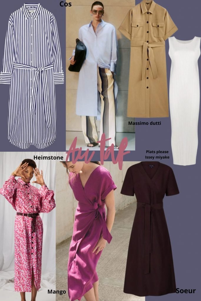 Pour le taf, l’idée n’est pas de jouer à Esmeralda, alors plus c’est simple mieux c’est, non ? Robe chemise, robe saharienne, robe portefeuille, robe tube comme on vient de le voir mais associée à une chemise, plutôt midi ou 7/8. Comme on n’est pas là pour porter le flanc aux relous, ça doit être classe et féminin mais respectable. Je suis réac moi ? Non juste pragmatique, il y a un temps pour tout dans la vie. ah ah