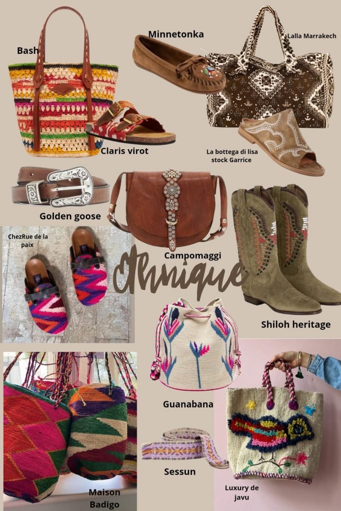 Les accessoires d’été viennent aussi combler notre envie d’ailleurs et c’est dans le folklore et l’artisanat de contrées lointaines que nous voyageons à travers eux. Si nous pouvons en abuser sans modération sur nos lieux de vacances, c’est en revanche avec parcimonie que nous devons les distiller dans nos looks du quotidien. Un total look denim + des mocassins indiens, une robe tee-shirt + un sac folklo, une robette en soie imprimée + des tiags brodées, une robe chemise + des sandales en ikat…