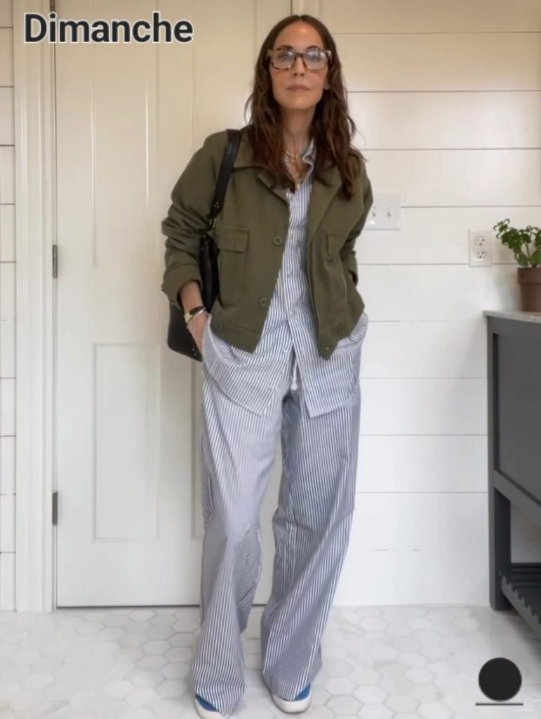 Le dimanche restons en pyj (ou équivalent) et retrouvons notre veste ou chemise du jeudi ainsi que les tennis de la veille. Un dressing réduit / des tas de possibilités.