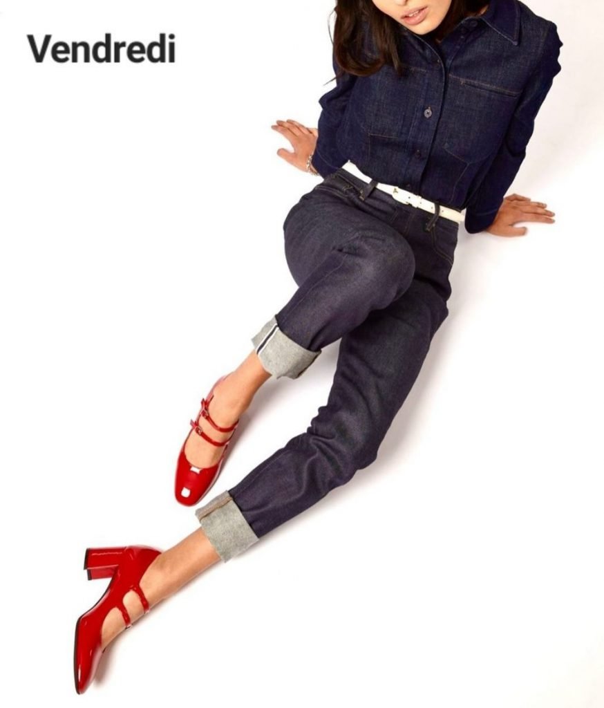 Vendredi denim, brut ou pas. Jean fitté, soit reboulé par un large revers soit 7/8, chemise ou veste assortie ou dans un denim différent et chaussures de fifille.