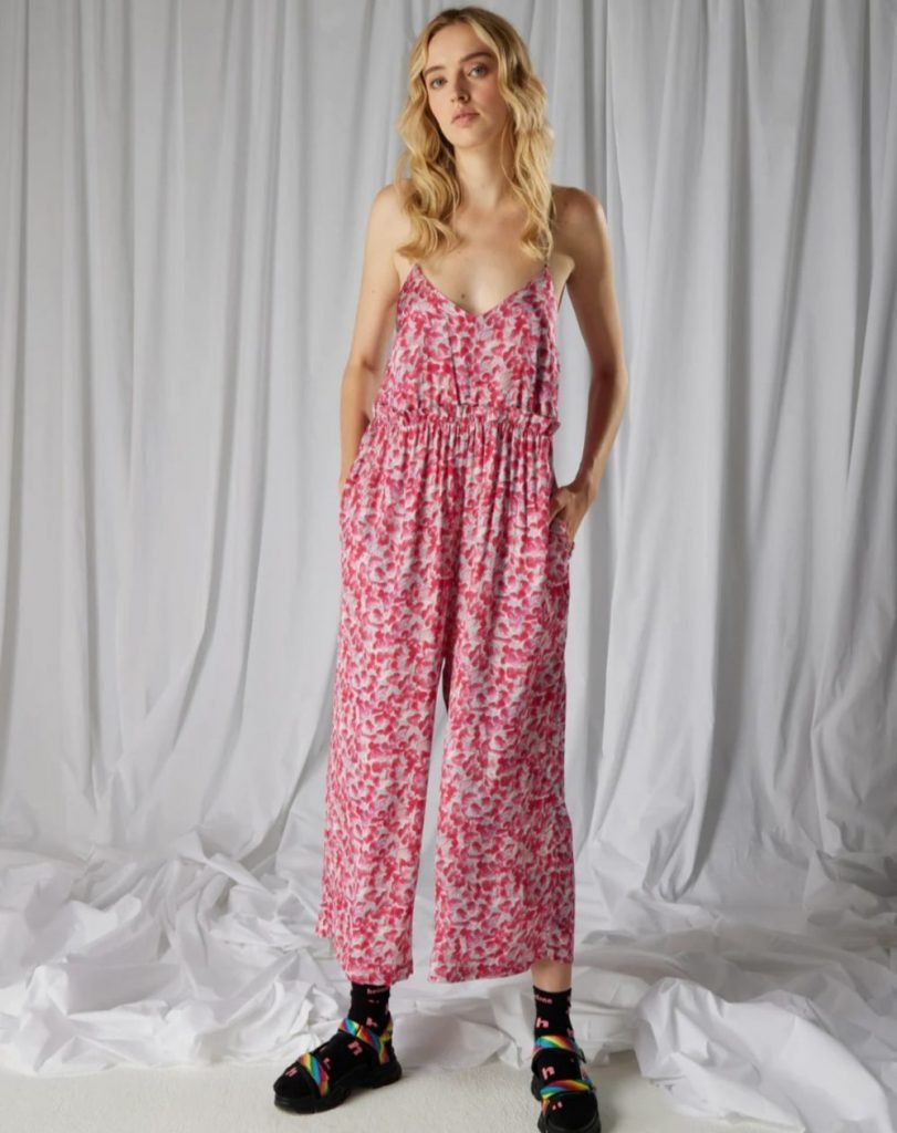 Les photos ne rendent pas justice à ce fute Heimstone (ancienne co) qu’il faut voir vivre pour apprécier sa dégaine. Celui-ci est très large et peut presque s’assimiler à une jupe alors que le pantalon fluide lui, l’est généralement légèrement moins. On le porte avec un débardeur ou un tee-shirt, en ensemble également c’est chouette. À la cool avec des sandales, des tennis, des birk, il a quand même l’autorisation de sortie pour le soir, avec des sandales à petits talons et une veste fluide, comme un cardigan.