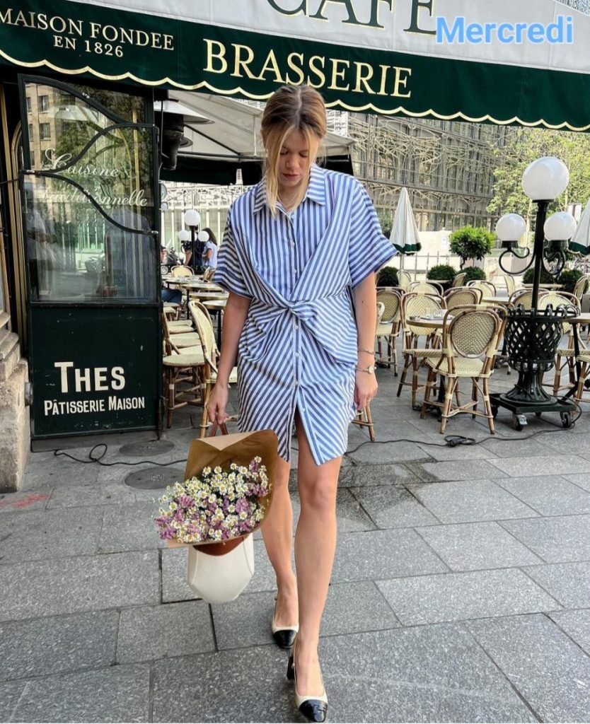 Mercredi en robe chemise (conceptuelle comme ici c’est bien, mais une simple robe chemise fera l’affaire), un cabas, des ballerines pour la ville – Je sais bien que personne ne part 2 mois en vacances, je glisse ici et là des looks plus urbains.