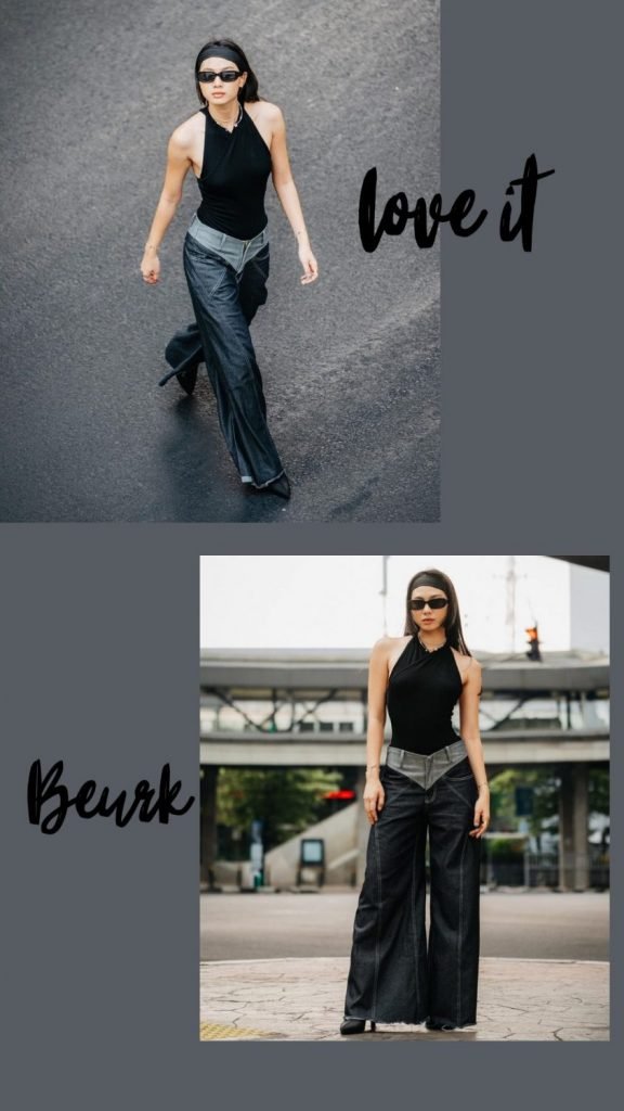 Je suis tout d’abord tombée sur la 1ere photo – wha j’adore… je vais voir le compte du photographe et bim, 2ème photo – le jean est tout cartonné, la coupe et les découpes sont douteuses, il est trop court, les chaussures sont inadaptées… j’aime pas. Les photos sont souvent trompeuses. Lorsque je bossais sur les séries mode il n’était pas rare que nous usions et abusions d’épingles pour ajuster les vêtements comme on le souhaitait. Sur Insta c’est pareil, tout est mis en scène dans une perfection quasi chirurgicale. À l’inverse, il arrive que les photos ne rendent pas justice à certains vêtements. Conclusion, ne jamais se fier à ce que l’on voit mais à ce que l’on essaie en situation si possible – bouger, marcher, s’asseoir – jusqu’à ce qu’on vous dise « ça suffit Madame maintenant, nous allons fermer » 🙂 –