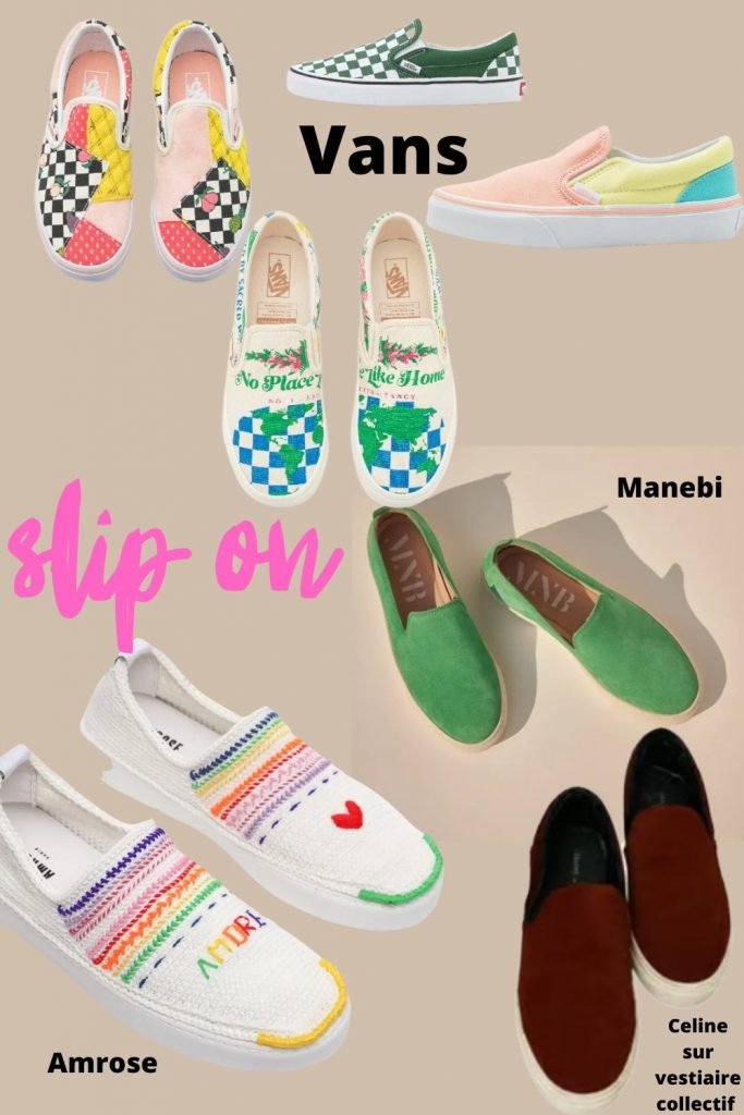 Petit point pratico pratique… le temps est bof bof (entre averses et éclaircies) et vous devez marcher quelques kilomètres durant la journée… la slip on est the good idea. La slip on c’est la charentaise de la journée 🙂 bon OK, bien plus esthétique qu’une charentaise. Plus fine qu’une sneaker, elle s’harmonise parfaitement avec les robes et se porte nu-pied (petites protections de pieds en coton pour éviter la surchauffe).