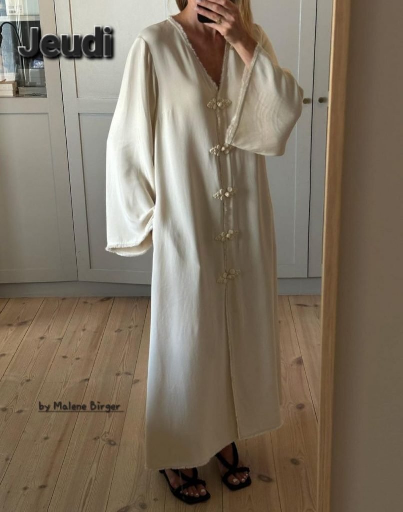 Idem avec cette robe burnous qui passera difficilement en réunion du 1er septembre 9h00 – à moins que vous n’arriviez avec votre chameau – Néanmoins vous pourrez toujours la sortir pour un dîner copines fashion (les seules à comprendre ce type de délire) associée à des sandales à talons de folaï. Perso, j’adoreeee.