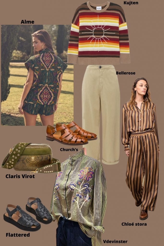 Ce style abolit les saisons, l’été se mélange joyeusement à l’hiver grâce au jeu de superposition – Robe légère ou pantalon souple sont réchauffés par des grosses mailles. Les chaussures sont toujours plates et souvent costaudes, utilitaires quoiqu’il en soi. C’est un style parfaitement adapté pour vivre hors des villes, passer du taf au jardin, du vélo au resto. La funkytude vient rajouter un supplément d’audace à l’ensemble. Comme avec ces chemises délicatement brodées, ces mailles richement travaillées.