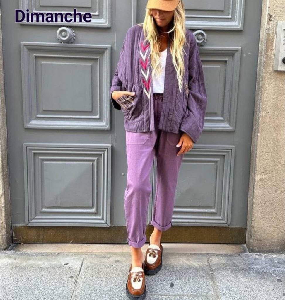 Dimanche toujours dans le mood du focus, avec un chino + 1 kimono matelassé ou 1 veste en boutis, tee-shirt simple et mocassins épais.