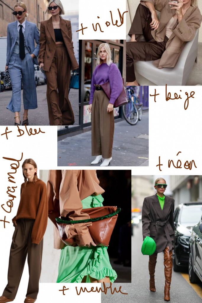 Lorsqu’on parle tendance, mode, ça peut effrayer ou rebuter. Tout d’abord parce que ça va trop vite, un it truc chasse l’autre à la vitesse de l’éclair, parce que c’est une quête sans fin, parce que c’est trop coûteux, parce que c’est pour les « jeunes », parce ce n’est pas notre style, parce que parce que… Et tous ces freins sont des raisons tout à fait recevables. C’est bien pour ça que j’ai appelé ce rendez-vous hebdomadaire « cahier de style » et non « cahier de tendances ou de mode ». Capter l’air du temps ne veut pas dire tout changer ou sauter sur toutes les nouvelles tendances qui passent. Ça veut dire adapter, faire un reset de ce qu’on possède déjà, ça veut dire rester aware comme dirait Jean-Claude Van Damme, dans le mouvement, dans le coup comme dirait ma mère. C’est casser certains automatismes pour aborder d’un œil nouveau son dressing, c’est garder son style en le faisant évoluer. Par exemple cette saison, il y a une tendance très lourde que personnellement j’adore et qui peut-être ne nécessite aucun investissement, c’est la monochromie. S’habiller de pied en cap dans une même couleur ou en léger camaïeu. Cela créé un impact visuel très fort – marron (la couleur de la semaine donc RV plus bas), kaki, marine, écru, vert, bordeaux… Tendance ne rime pas obligatoirement avec dépense ! C’est parti pour les looks de la semaine…