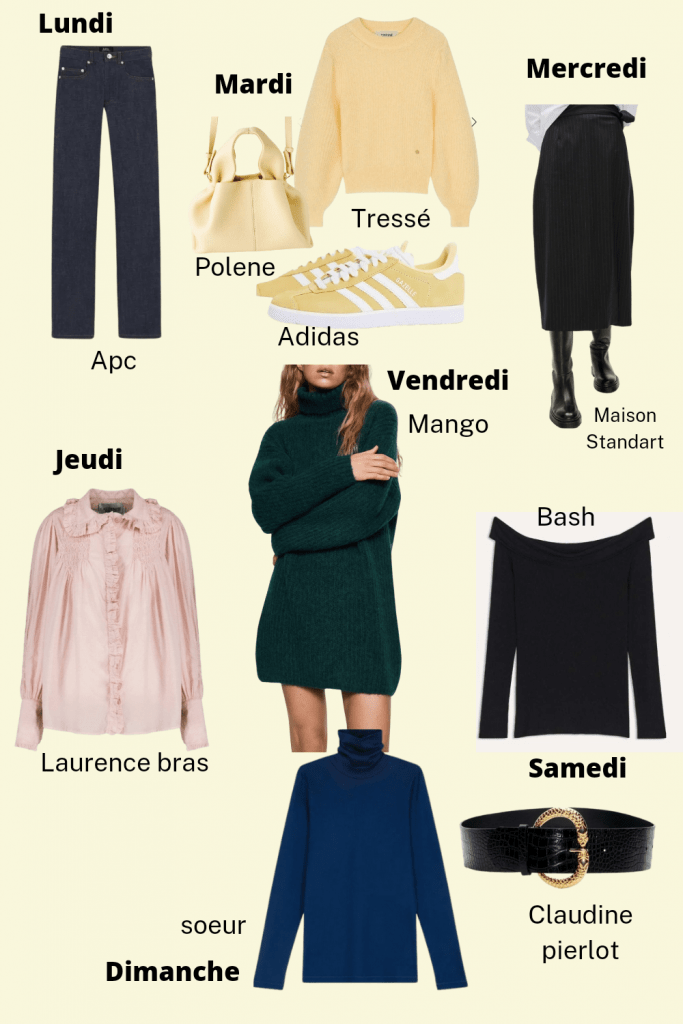 Hello. Le Look navy j’aime beaucoup . J’ai des jeans bruts mais pas de veste ni de pull bleu marine car chez moi j’ai beauuuuucouo d’imprimés . Le costume c’est chouette mais j’en porte moins en ce moment . Le look du mercredi me donne très envie d’investir dans une jupe longue. Je n’en porte jamais. Pour celine suis fan aussi car on peut s’en inspirer – et le réinterpréter avec nos vêtements . Pour les chaussures je privilégie aussi le confort. j’ai essayé dernièrement les godillots isabel marant, j’en avais de ce style il y a des années…
