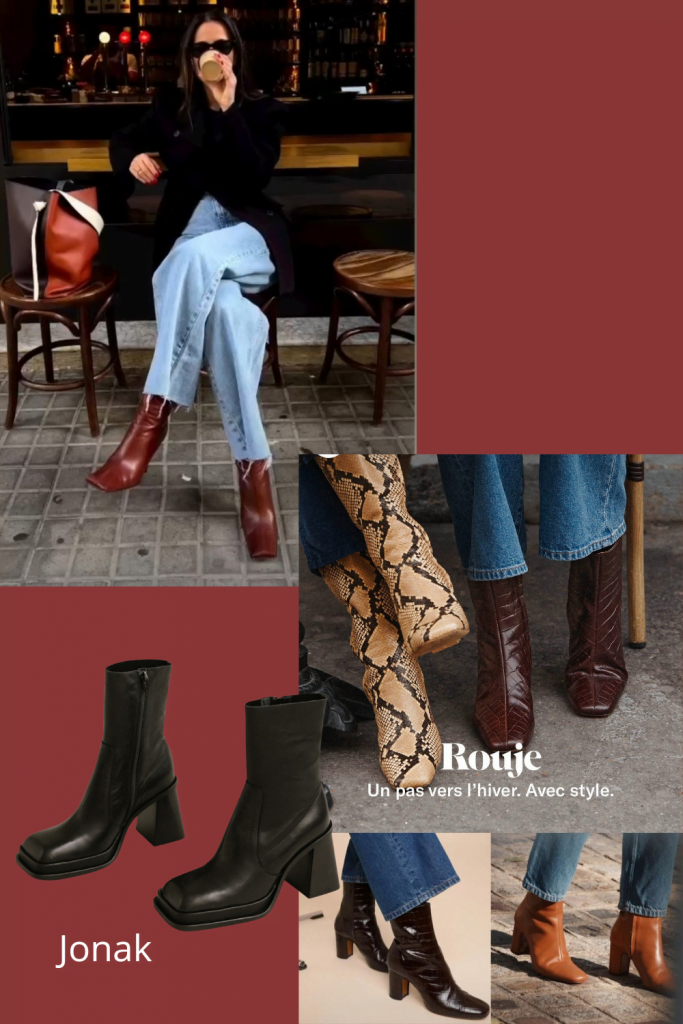 J’ai toutes les chaussures que j’aime mais gros coup de coeur pour les bikers Jonak et les associations de couleur avec le marron style after eight sont inspirantes .
