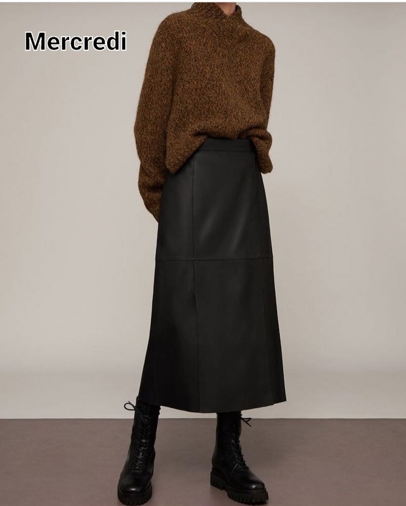 J’ai une jupe en cuir verte identique au look du mercredi oubliée dans mon dressing.
