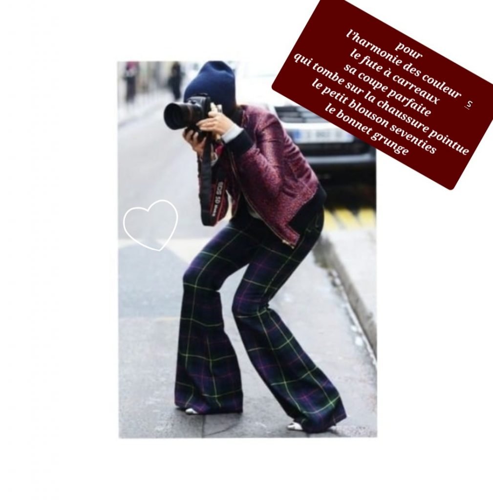 Chaque semaine nous apporte son lot de tayloring dans une version différente. Ce mardi ce sera le costard mais à carreaux – ici un « Salut Beauté » – je le trouve extra mais j’ai déjà le mien. Si le total look so british vous effraie, un pantalon suffira. On troque le haut en résille contre une petite maille côtelée, les shoes méga pointues contre une paire de boots à bouts carrés ou des tiags.