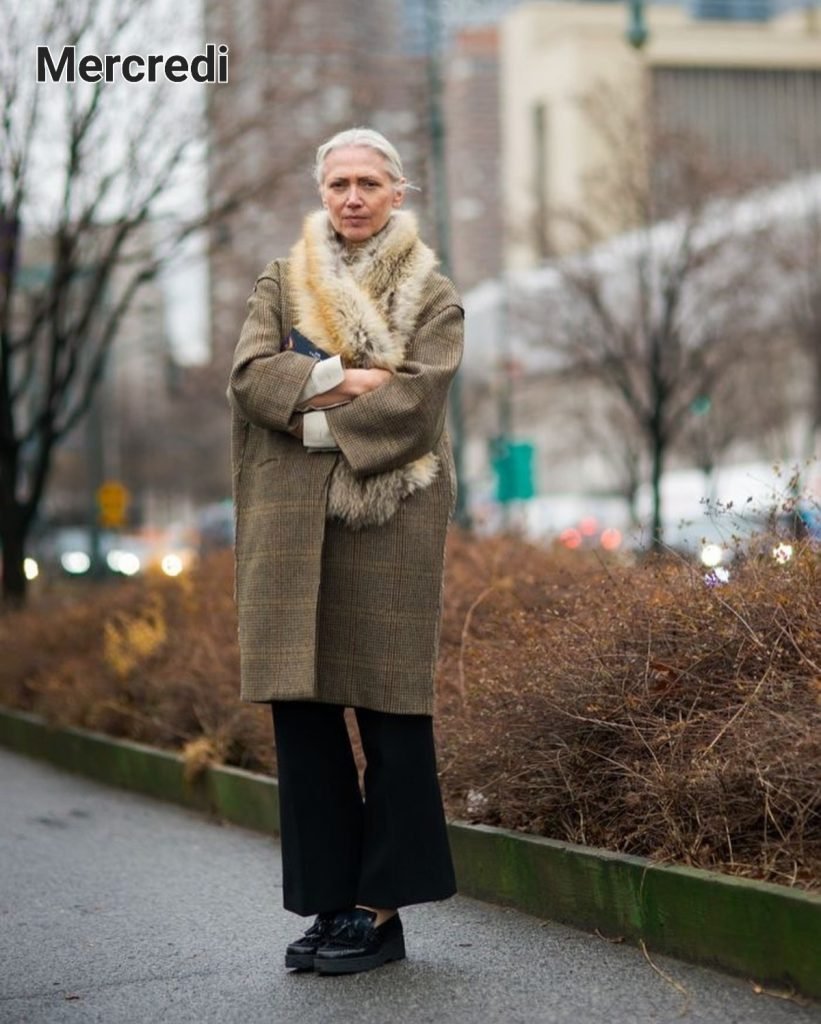Décidément, le petit pardessus à carreaux est partout (et surtout dans les boutiques vintage – au rayon homme). Sa longueur est midi (sous le genou) et il a un petit col chemise. Rétro quoi. Pour les matins frisquets et pour le féminiser il suffira de lui adjoindre une écharpe en (fausse) fourrure. Je suis sûre que vous avez ça au fond de votre armoire. N’importe quel pantalon 7/8 fera l’affaire, porté avec des mocassins ou des boots à grosses semelles.
