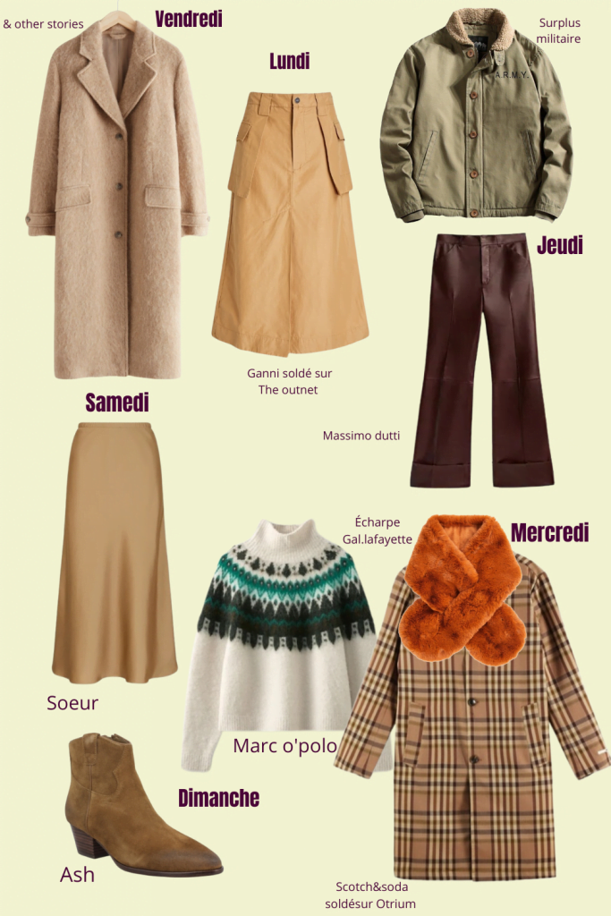 Des fringues qu’on aime bien, on en a plein nos placards… sauf que comme pour les opinions, c’est souvent le dernier qui a parlé qui a raison. On a donc toutes tendance à porter ce qui est arrivé en dernier dans notre dressing et à oublier le reste. Résultat, on tourne vite en rond et la frénésie d’achat guette. D’où l’idée de ces 7 looks par semaine mais je ne connais pas votre dressing, c’est donc vous qui allez devoir bosser un peu. Chaque semaine, extirpez de vos armoires un manteau, une paire de chaussures, une robe, un pantalon, une veste, que sais-je, que vous aimez beaucoup, mettez-les de côté et chaque jour mettez un point d’honneur à associer cette pièce avec soit un des looks de la semaine, soit avec vos habits neufs ou anciens. C’est une bonne façon d’optimiser votre dressing, d’arrêter de culpabiliser parce que les fringues s’entassent mais que vous pensez n’avoir rien à vous mettre. Le stylisme c’est comme la cuisine, il suffit d’un point de départ et tout s’enclenche. C’est parti pour les looks de la semaine