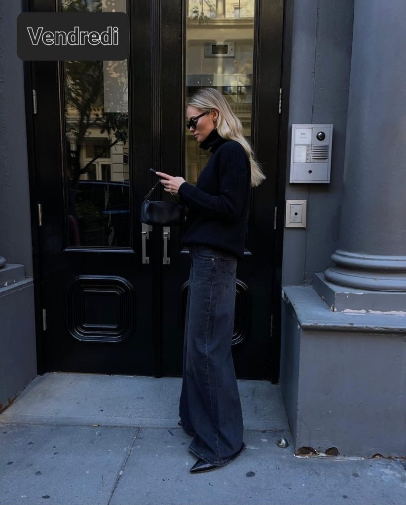 Contente de voir un look noir avec un jean c’est toujours une possibilité le total noir .