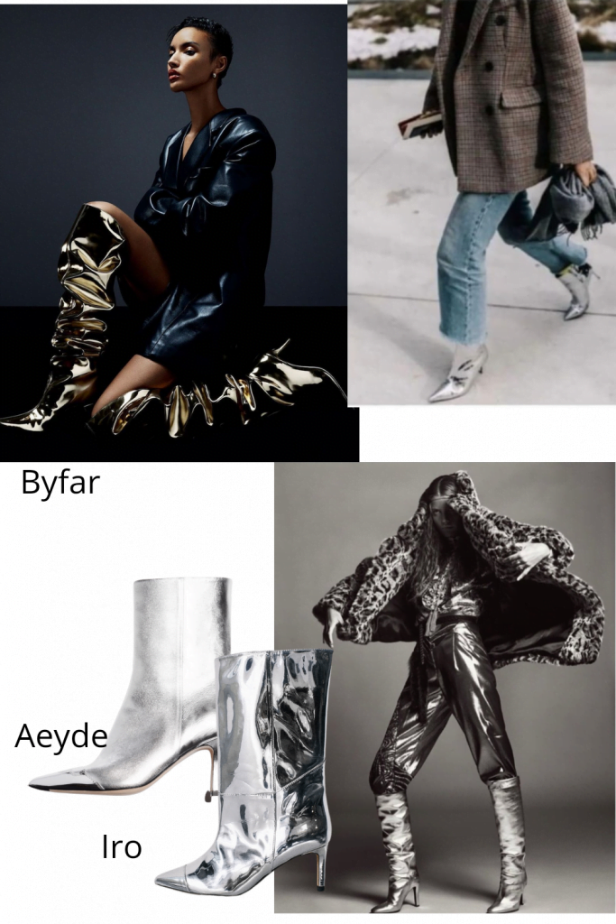 L’autre alternative étant d’enfiler des bottes qui attireront toutes les attentions – et c’est tout l’esprit du Studio 54 qui flottera sur le dance floor. J’adooooore.