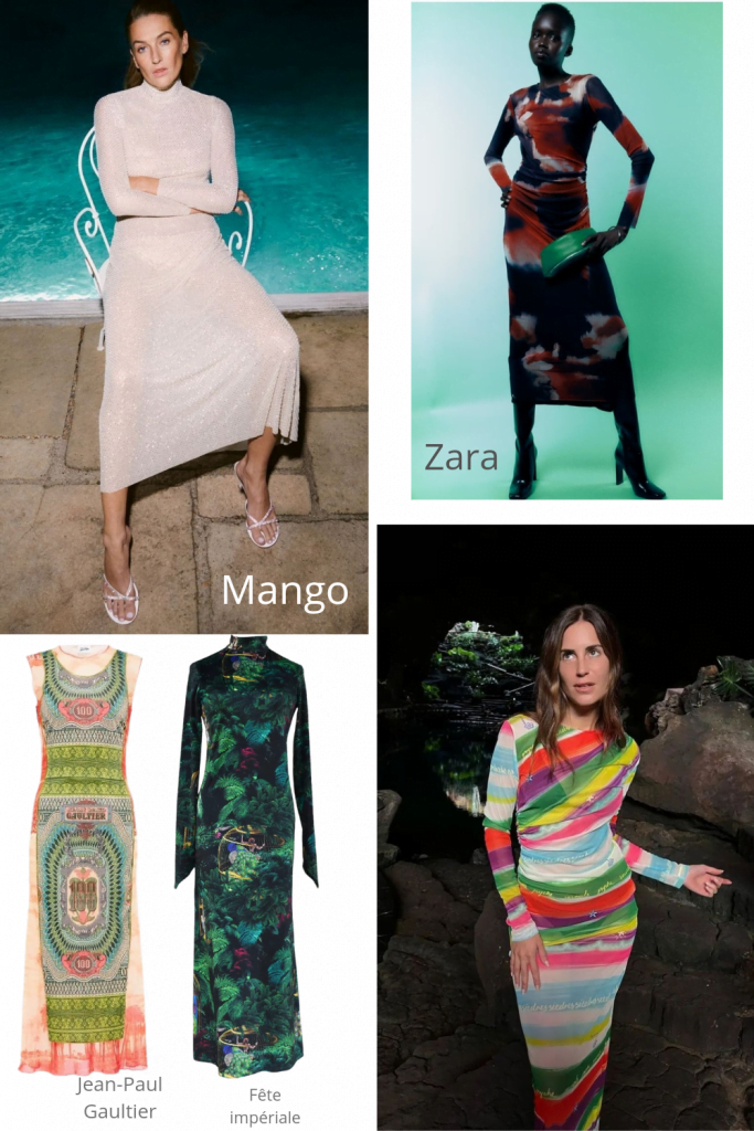 Le tube de l’année : Pour les plus ieuv d’entre nous, souvenez-vous de ces robes tubes en stretch seconde peau légèrement transparentes et ben elles sont de retour et font un carton auprès des millénials. C’est Jean-Paul Gaultier qui avait lancé ça à la fin des années 80 avec ses imprimés tatouages. Alors est-ce encore possible ? Mais ouiiiiii carrément. C’est d’ailleurs ce que j’ai dit à une amie (coucou Marianne) qui a hérité d’une JPG de sa maman et qui hésitait à la porter, avec un blazer et des boots masculines elle était superbe. C’est aussi l’occase de porter de l’imprimé ! En revanche, haro sur les modèles transparents accélérateurs de like que les tendanchieuses affectionnent. On ne racole pas sur la voie, même numérique.